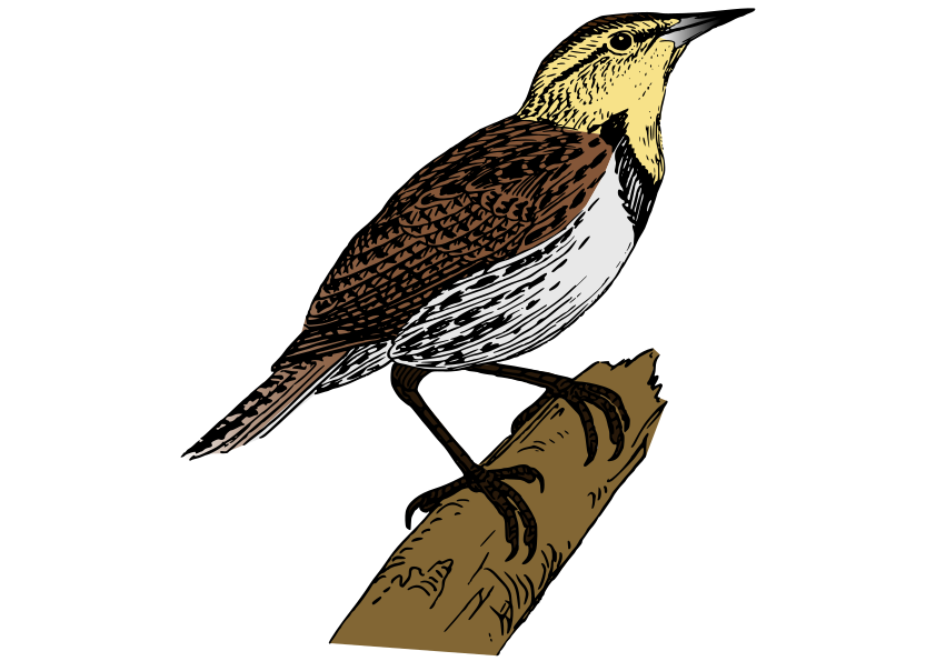 This features a small bird perched on top of a branch. It is a brown and white colored lark, with its head being yellow in color. The bird appears to be sitting comfortably on the branch, possibly taking a break or observing its surroundings. The branch itself seems to be made of wood, providing a natural habitat for the bird. Overall, it's an interesting scene that captures the beauty and tranquility of nature.