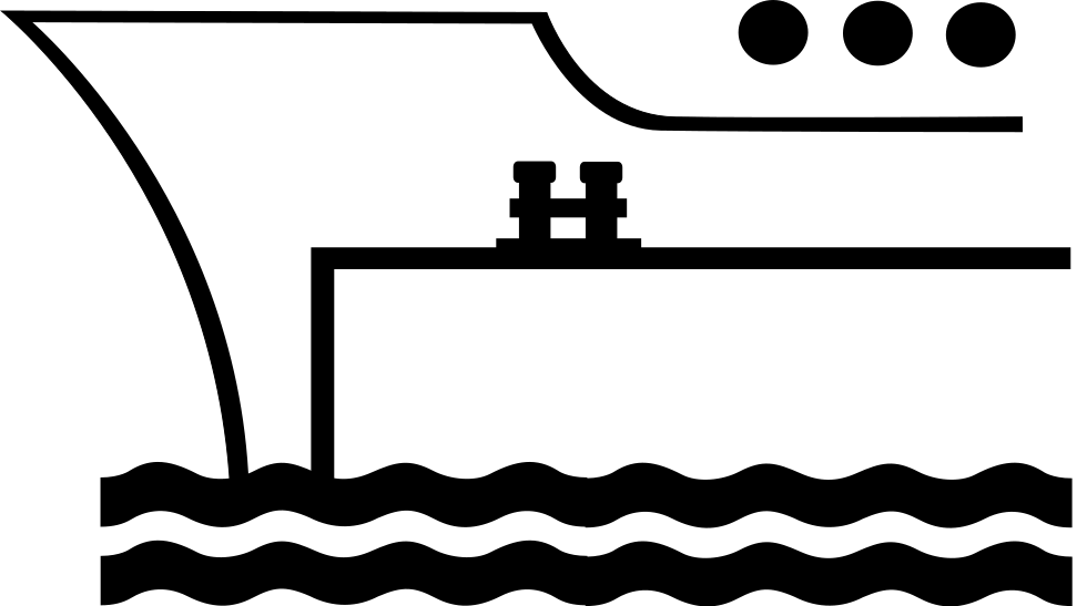 This features a black and white illustration of a ship docked next to a pier. The boat is positioned on the left side of the image, extending from the top to almost the bottom. Above the boat, there are two clocks visible in the scene, one near the center and another slightly above it. Additionally, there is a person standing close to the right edge of the image, possibly observing or attending to the docked ship. The overall composition creates an artistic representation of a maritime setting.