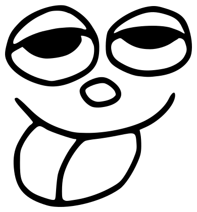 This features a black and white drawing of a smiling face with an exaggerated tongue sticking out. The face is made up of two eyes, one on the left side and another on the right side, as well as a nose located in the center of the face. The mouth is open, revealing the tongue that extends from it. This drawing gives off a playful and fun vibe, likely meant to evoke laughter or amusement.