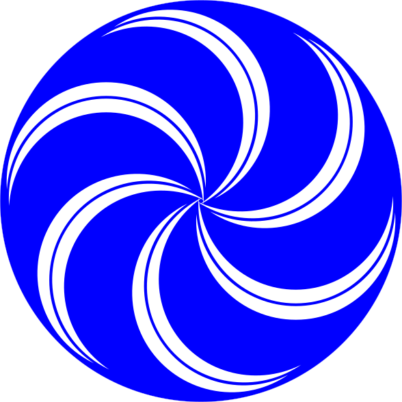 This features a blue and white circular object with a swirling pattern. This design resembles a spiral or a whirlpool, giving the impression of movement within the circle. The colors used in this artwork are predominantly blue and white, creating a visually appealing contrast between the two shades. The overall composition of the image is quite captivating, with the swirling pattern drawing attention to its center.