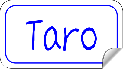 This features a blue name tag with the word "Taro" written in white letters. The tag is placed on top of a brown background, giving it a contrasting appearance. This type of name tag could be used at events such as meet and greets or parties to help people identify each other easily.