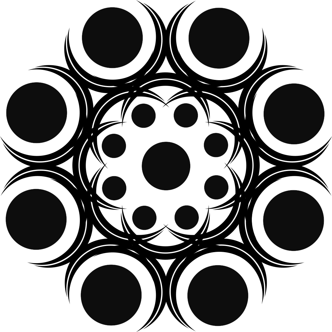 This features a black and white design with circles of varying sizes. There are twelve circles in total, each one slightly different from the others. Some circles are larger than others, creating an interesting visual effect. The circles are arranged in a circular pattern, giving the impression of a complex and intricate design. This artistic piece could be used as a decorative element or for various purposes such as wallpaper, fabric patterns, or even as part of a logo.