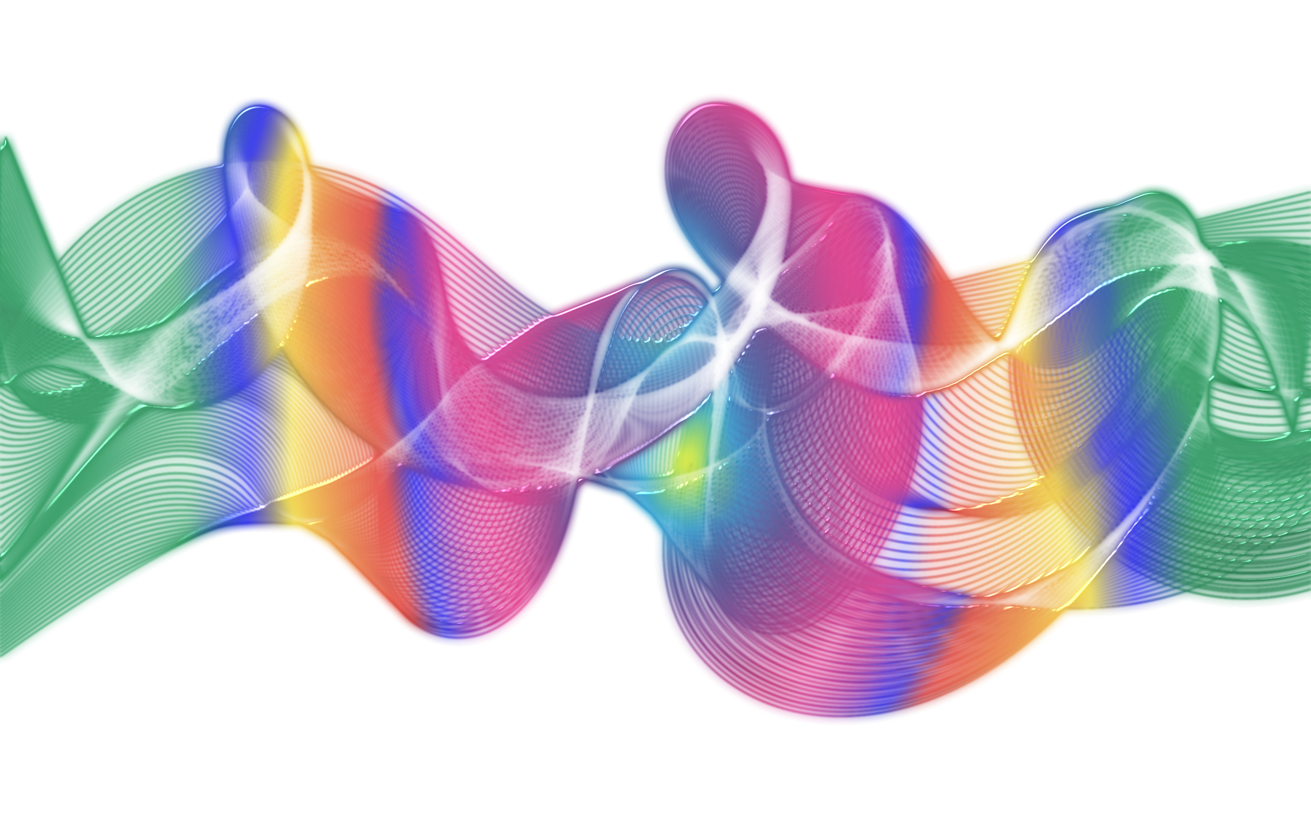 This features a wavy ribbon with rainbow colors, creating an eye-catching and vibrant display. The ribbon is placed horizontally across the scene, adding a sense of depth and dimension to the composition. The various colors of the ribbon create a visually appealing contrast against each other, making it stand out as the main focus of the image.