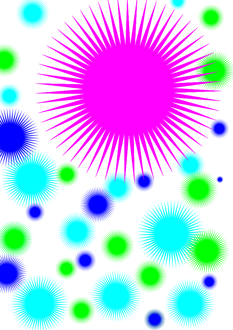 This features a large pink sun with green and blue dots surrounding it. The sun is located in the center of the scene, surrounded by various colored dots that create an interesting visual effect. The combination of colors and shapes gives the impression of a vibrant and lively atmosphere.