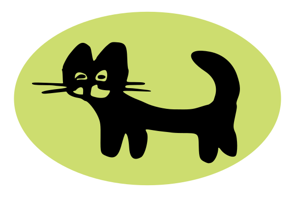This features a black cat with a green background. It is depicted as a cartoon or stylized drawing, giving it an artistic and playful appearance. The cat's body is positioned in the center of the frame, while its head occupies a slightly larger portion on the left side. Its tail extends from the right side of the image towards the bottom, adding to the overall visual appeal of the scene.