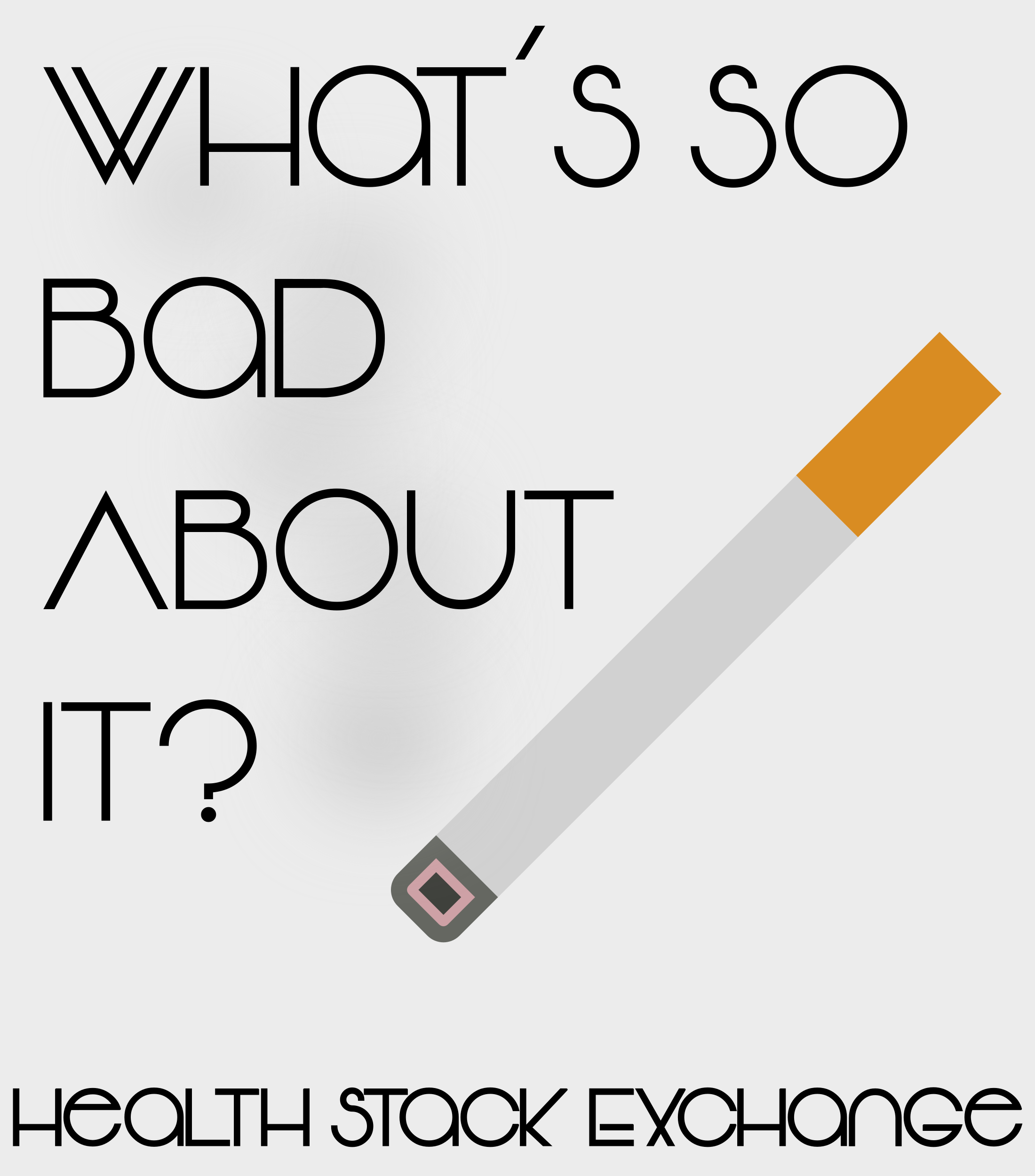This features a cigarette with the words "What's So Bad About It?" written on it. The cigarette is placed in front of an orange background, which contrasts nicely with the white text. The design of the poster suggests that it might be related to health stock exchange or promoting a healthy lifestyle.