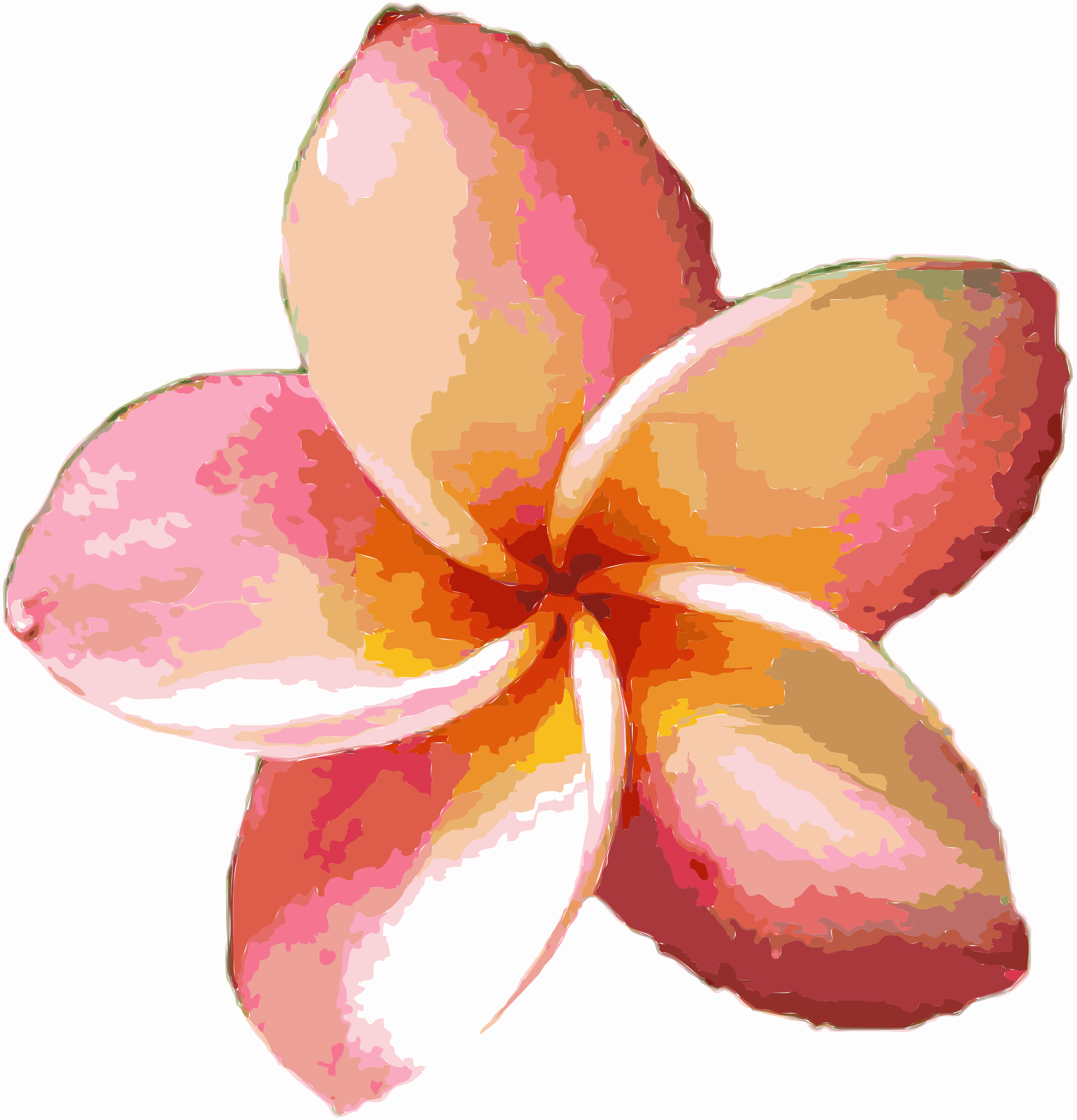 This features a close-up of a pink flower with yellow and orange hues. It appears to be an autotraced picture, which gives it a slightly artificial look. The flower is large and occupies most of the frame, making it the main focus of the image. Its vibrant colors and intricate details make it an eye-catching subject for viewers.