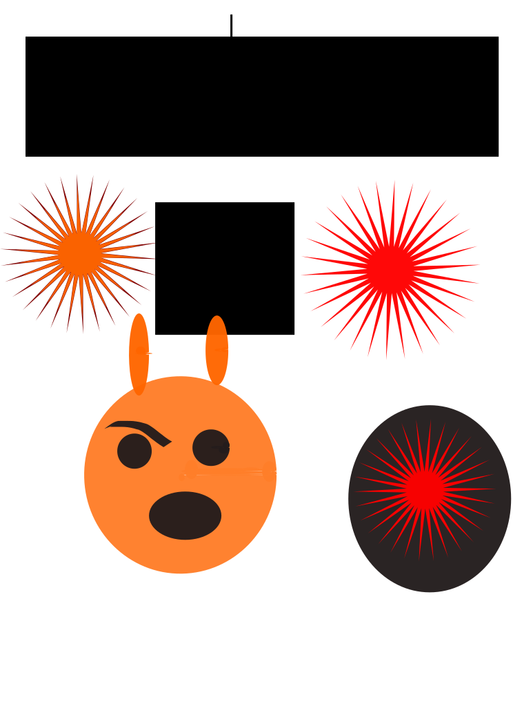 This features a collection of colorful and unique decorations. There are three red stars, each with a different design, placed in the center of the scene. Above these stars, there is an angry face emoji that appears to be glaring at the viewer. Additionally, there are two more emojis present in the image, one on the left side and another on the right side. The combination of these decorations creates a visually engaging and playful atmosphere.