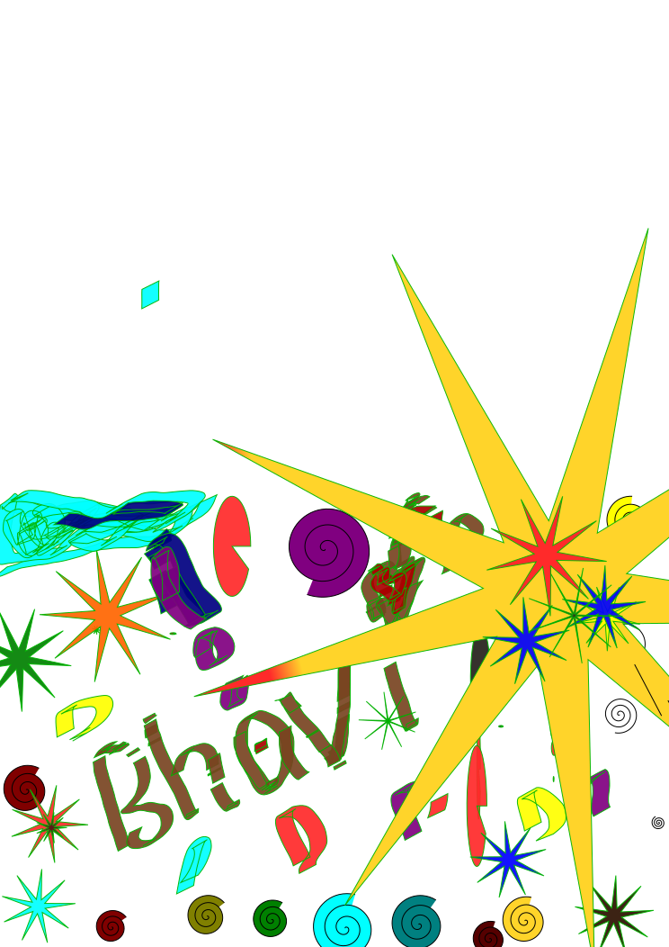 This is a colorful and vibrant artwork featuring the word "Bhaji" written in various colors. The letters are arranged in such a way that they form a star shape, with each letter being colored differently. The background of the image consists of a white surface, which contrasts beautifully with the bright colors of the text. This creative piece of artwork is likely meant to evoke feelings of joy and positivity through its use of colorful letters and unique arrangement.