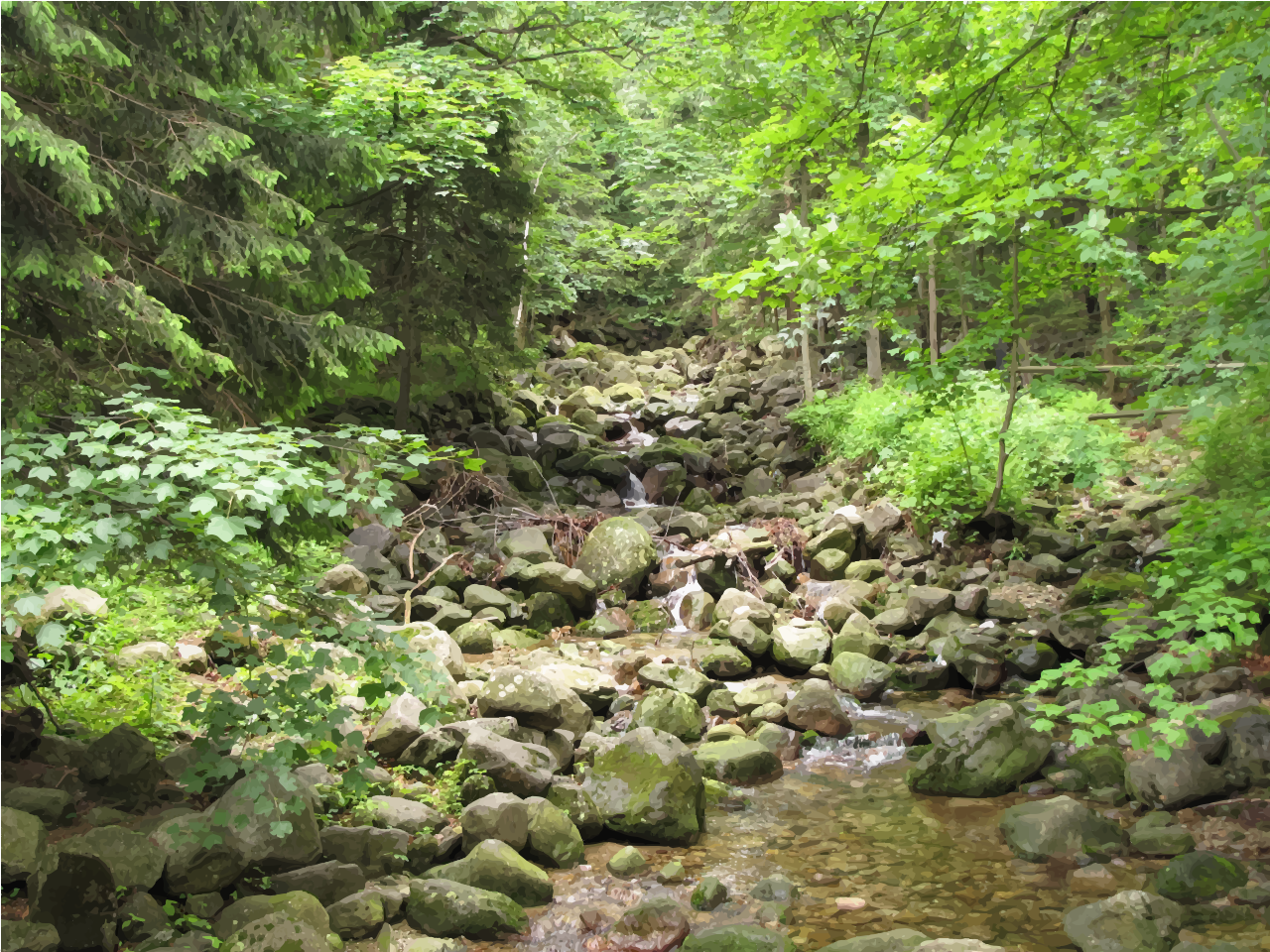 Tags: creek, idyllic, landscape, peaceful, secluded, stream, tree, water, woods