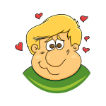 This features a cartoon character with a large belly and a green shirt. This character is depicted as being in love, as indicated by the hearts surrounding it. The character's facial expression appears to be sad or concerned, possibly due to its love-struck state. The overall appearance of the cartoon character gives off a sense of humor and playfulness, making it an entertaining and lighthearted image.