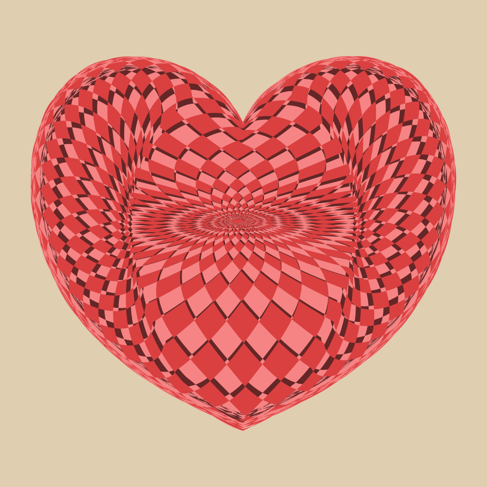 This features a heart-shaped object with an envelope deform, giving it the appearance of a red checkered pattern. This unique design is reminiscent of a star shape that has been transformed into a heart. The heart's shape and color are distinctive, making it stand out against its surroundings. The overall composition of the image creates an interesting visual effect, combining both the heart-shaped object and the envelope deform to create a captivating piece of art or design.