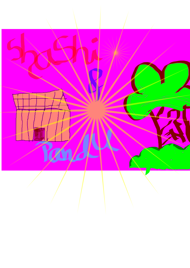 This features a pink background with various objects drawn on it. There is a house, a heart, and two stars in the scene. Above these objects, there are three words written: "Shechi". Additionally, there is another word at the bottom of the image that reads "you". The combination of these elements creates an interesting and colorful visual display.