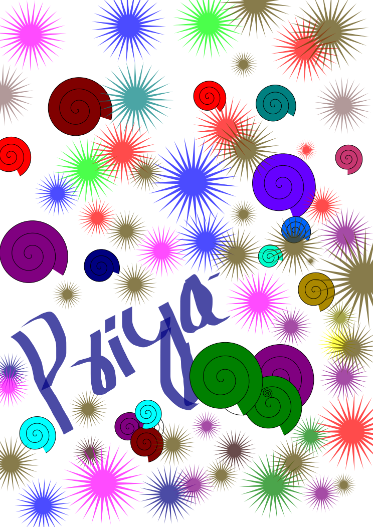 This is a colorful and vibrant display of various shapes, including stars and spirals. These shapes are arranged in a visually appealing manner, creating an eye-catching pattern. The colors used in the design are predominantly pink, green, yellow, blue, red, and orange. There are numerous instances of each color, making it a lively and dynamic scene. Overall, the image exudes a sense of creativity and artistic expression through its use of bright colors and unique shapes.