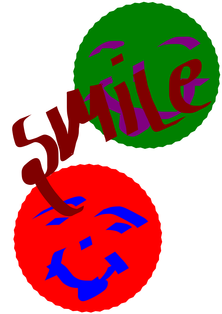 This features two red and green apples with smiley faces drawn on them. Each apple has a different colored face, one being red and the other green. The apples are placed next to each other, creating an interesting visual effect. The words "smile" are written above the apples in a contrasting color, emphasizing the theme of positivity and happiness conveyed by the image.
