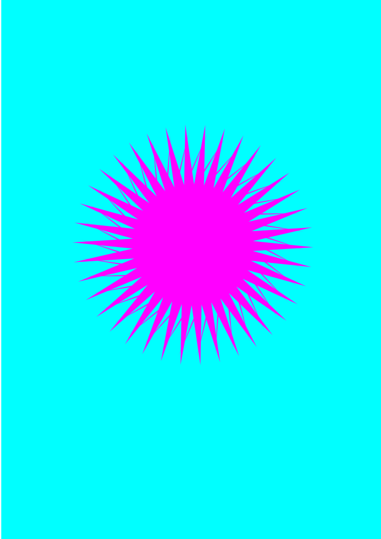 This features a large, bright pink star with a yellow center. It is positioned in the middle of a blue background, creating an eye-catching contrast between the two colors. The star's vibrant hue and bold design make it stand out against the lighter shade of blue that surrounds it. This striking combination of pink and blue creates a visually appealing scene that captures attention.
