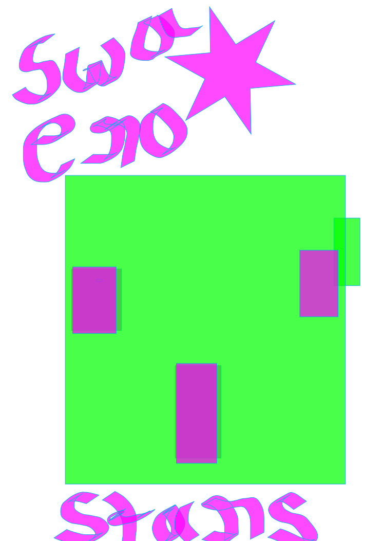 This is a square with a green background and pink stars. There are four distinct stars in the image, each varying in size and position. The stars are scattered throughout the square, creating an interesting visual effect. The overall design of the image gives it a playful and creative appearance.