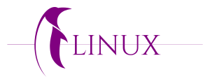 This features a purple penguin standing next to the word "Linux." The penguin is facing right and appears to be the main focus of the image. The word "LINUX" is written in white, with the penguin being the only other colorful element in the scene. This combination creates an interesting visual contrast between the purple penguin and the white text.
