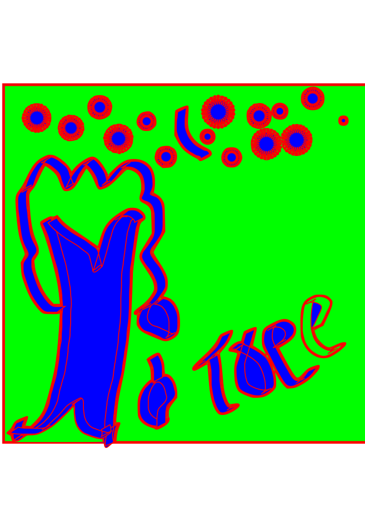 This features a green and blue drawing of a tree with the word "TOP" written in red. The tree is located towards the left side of the image, while the word "TOP" is positioned on the right side. The colorful design creates an interesting visual effect that stands out against the background.