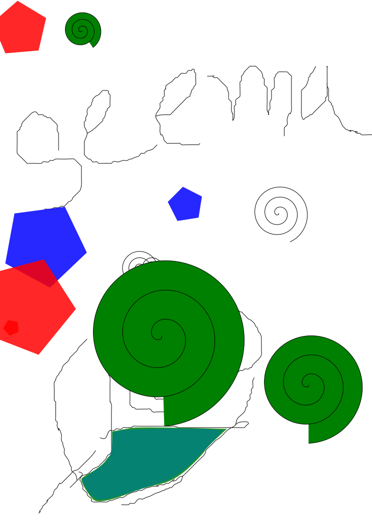 This is a colorful and creative drawing of a spiral, which appears to be the central focus. Surrounding this spiral are various other shapes and colors, including blue, green, red, and yellow. These additional elements create an intricate and visually appealing composition that draws attention to the spiral at its center. The combination of these different shapes and colors gives the drawing a dynamic and lively appearance, making it an interesting piece of artwork.