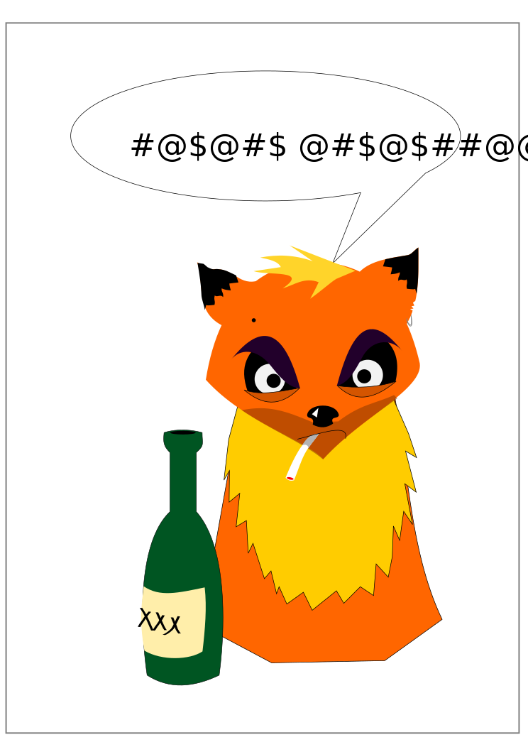This features a cartoon fox with an angry expression, standing next to a bottle of alcohol. The fox is holding a cigarette in its mouth and appears to be saying some bad words. The scene has a comical and playful vibe, as the fox's coloring and facial expression create a humorous contrast with the seriousness of the bad language it is speaking.