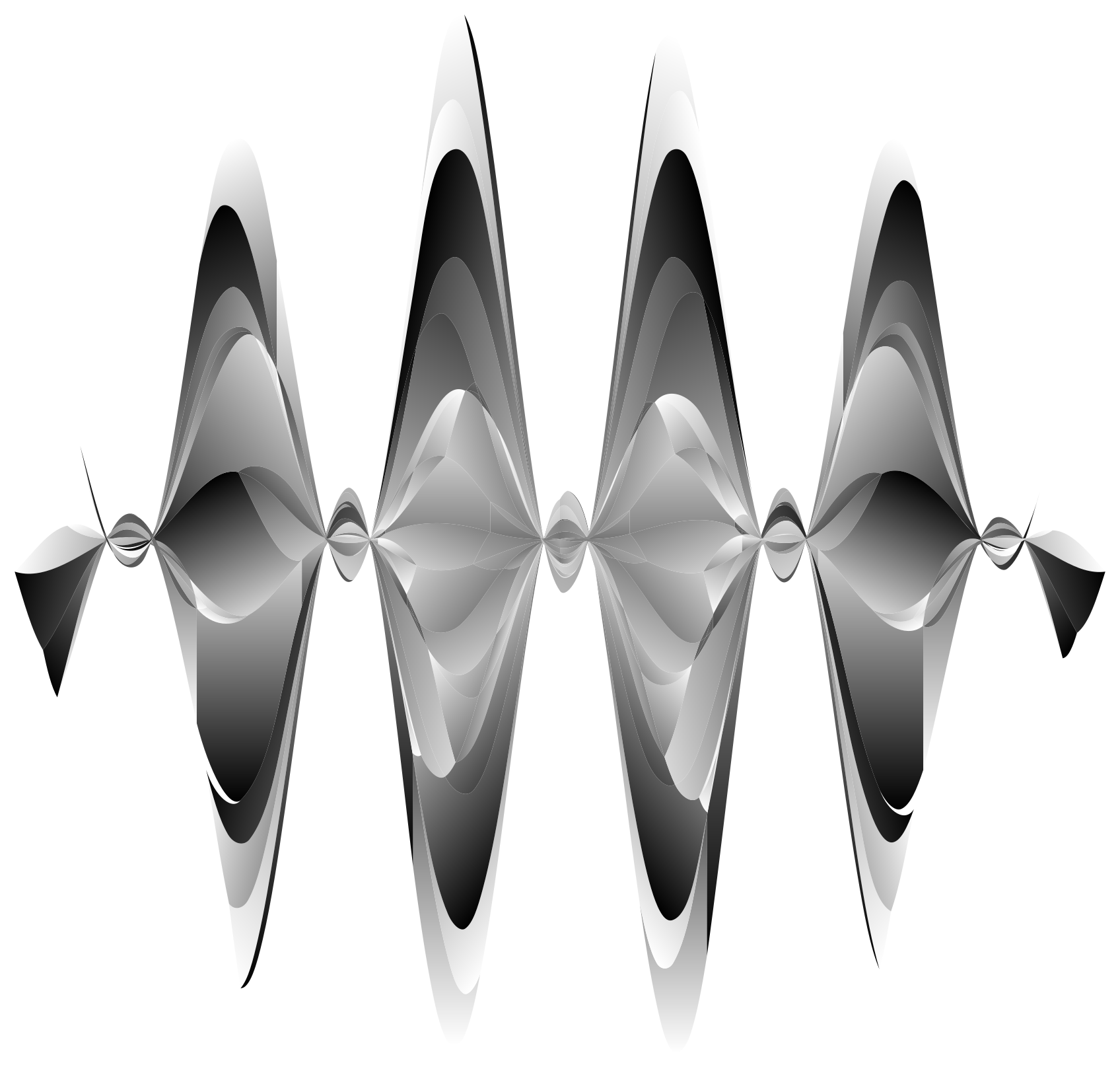 This features a unique design of four abstract waves, each with different colors and patterns. These waves are arranged in such a way that they appear to be intertwined or overlapping, creating an intricate and visually appealing composition. The background of the image is white, which provides a clean and uncluttered backdrop for the striking wave designs. Overall, this artistic piece showcases creativity and attention to detail in its presentation.