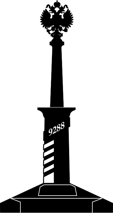 This features a tall black pillar with a number 9288 on it, standing in front of a building. This monument is likely commemorating the end of the Trans-Siberian railway, which spans 9288 kilometers. The pillar's height and prominence make it an eye-catching focal point within the scene.