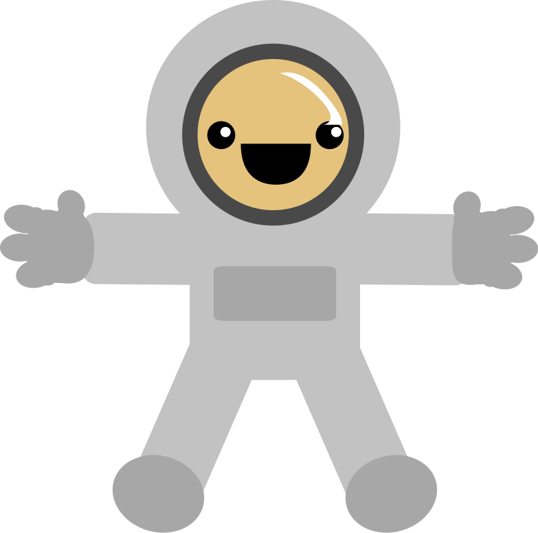 This features a cartoon astronaut wearing a light gray space suit. The astronaut is standing with their arms wide open, giving the impression of being welcoming or friendly. The design of the space suit and the overall appearance of the character gives it a playful and fun vibe. This illustration could be used in various contexts such as children's books, educational materials, or even advertising campaigns related to space exploration or science.