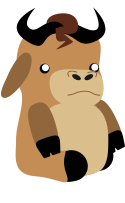 This features a cartoon-like drawing of a cow with large horns and a goofy expression. It appears to be a cute, anthropomorphic representation of the animal. The cow is wearing black gloves on its front paws, adding an extra touch of whimsy to the character. The overall design gives off a playful vibe, making it suitable for various applications such as children's books or merchandise.