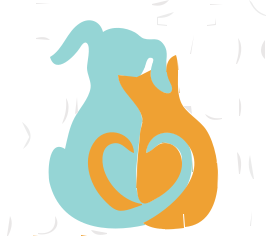 This features a heart-shaped illustration of a dog and a cat, with the dog on top. They are both in a loving embrace, showcasing their affection for each other. The dog is positioned towards the left side of the image, while the cat occupies the right side. This charming scene captures the bond between these two animals as they share a tender moment together.