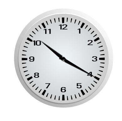 This features a large clock with black numbers and hands. The clock is set to 10:53, indicating that it's almost noon. The clock has a white face, making the time easy to read. The clock is positioned in the upper left corner of the image, taking up most of the space.