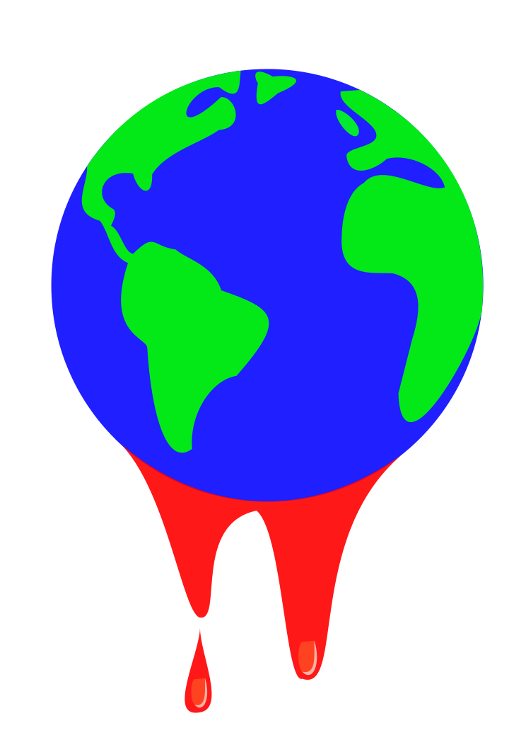 This features a blue and green Earth with a red drop of liquid, possibly blood or paint, falling from it. This unique representation of the planet is quite striking as it showcases the Earth in a different light. The combination of colors creates an interesting visual effect that draws attention to the image. The contrast between the vibrant hues of blue and green with the bold red drop adds depth and intrigue, making this a captivating piece of art or design.