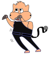 This features a cartoon fox with an angry expression on its face. It is wearing a black shirt and jeans, giving it a tough appearance. The fox appears to be trying to look scary as it poses for the camera. Its facial expression and body language convey a sense of aggression and defiance.