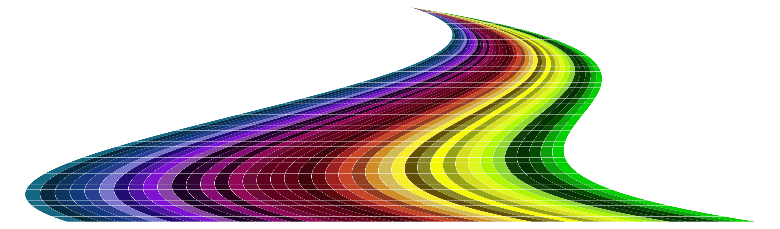 This features a white background with a rainbow road that extends from the left side to the right. The road is colorful and appears to be winding, giving it an interesting visual effect. There are several colors in the rainbow, including purple, green, yellow, orange, blue, and red. These colors create a vibrant scene that stands out against the white background.