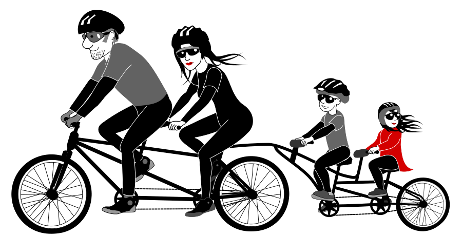 Tags: bicycle, boy, dad, family, girl, martin collection, mom, parent, semi-realistic people, tandem, bike, cycling, child, riding, skateboarding, black and white