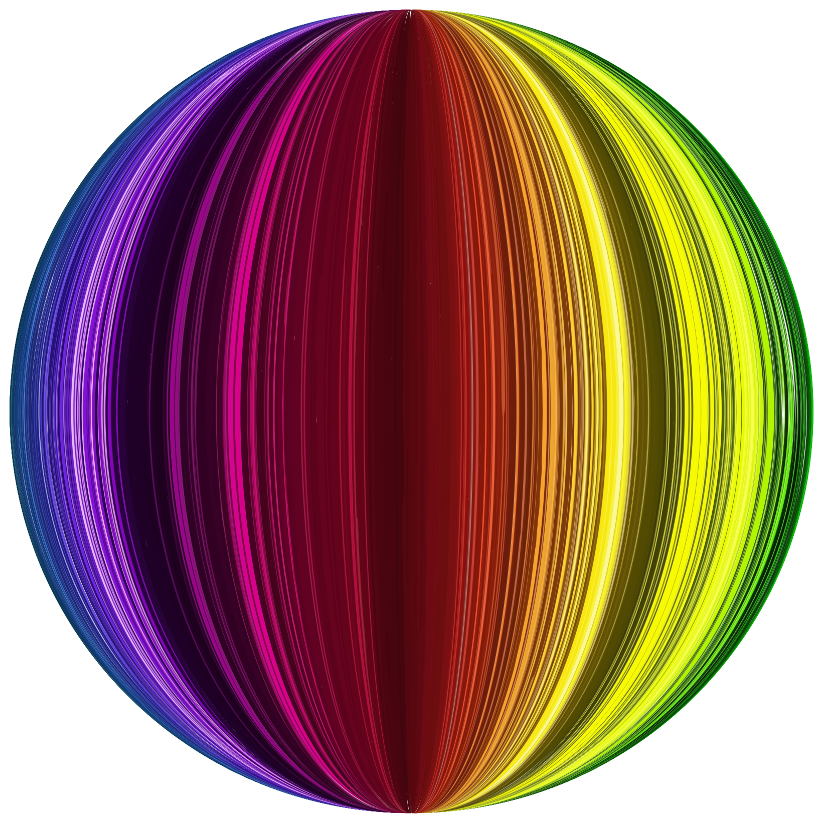 This features a large, colorful sphere that is made up of curved lines. These lines vary in color and create an eye-catching pattern on the surface of the sphere. The background of the image is white, which provides a clean and contrasting backdrop for the vibrant colors of the sphere. This unique and visually appealing object could be used as a decorative piece or even as a functional item in various settings.