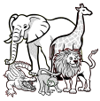 Tags: affe, africa, afrika, animal, crocodile, elephant, giraffe, jungle, krokodil, line art, lion, monkey, outline, tier, tiere, wild