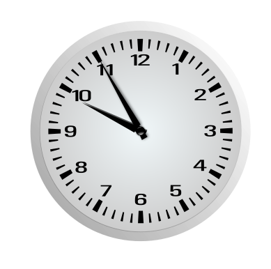 This features a large clock with black numbers and hands, displaying the time of 10:58. The clock is positioned in the upper left corner of the scene, taking up most of the space. The clock's face is white, contrasting nicely against the background. The clock's hands are clearly visible, indicating that it is almost eleven o'clock. This image could be used to represent a sense of urgency or time management, as the clock is winding down towards the final minutes in this series.