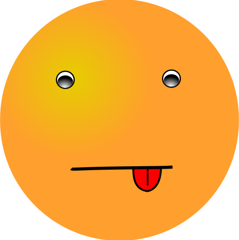 This features a round, orange face with a large tongue sticking out of its mouth. The face is drawn in a cartoon style and has two eyes, one on the left side and another on the right side. There are also two small circles representing ears located above the eyes. This whimsical drawing gives off a playful vibe and could be used for various purposes such as an emoji or a character design.
