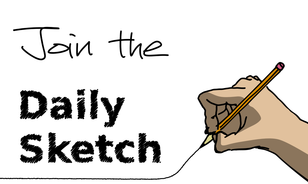 This features a person holding a pencil and writing on a piece of paper. They are creating a daily sketch, which is likely meant to be a part of their daily routine or creative outlet. The handwritten text above the scene reads "Join the Daily Sketch," suggesting that this activity might be encouraged by others or even shared with an online community. The person's focus on their work indicates dedication and commitment to creating something new each day, whether it is a drawing, sketch, or other form of artistic expression.