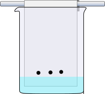 This features a clear glass container with three small holes at the top. Inside the container, there is blue liquid filling the space. The container appears to be a flask or measuring cup, and it seems to be used for scientific purposes. The transparent nature of the container allows one to see the liquid inside, making it easy to monitor the level of the fluid.