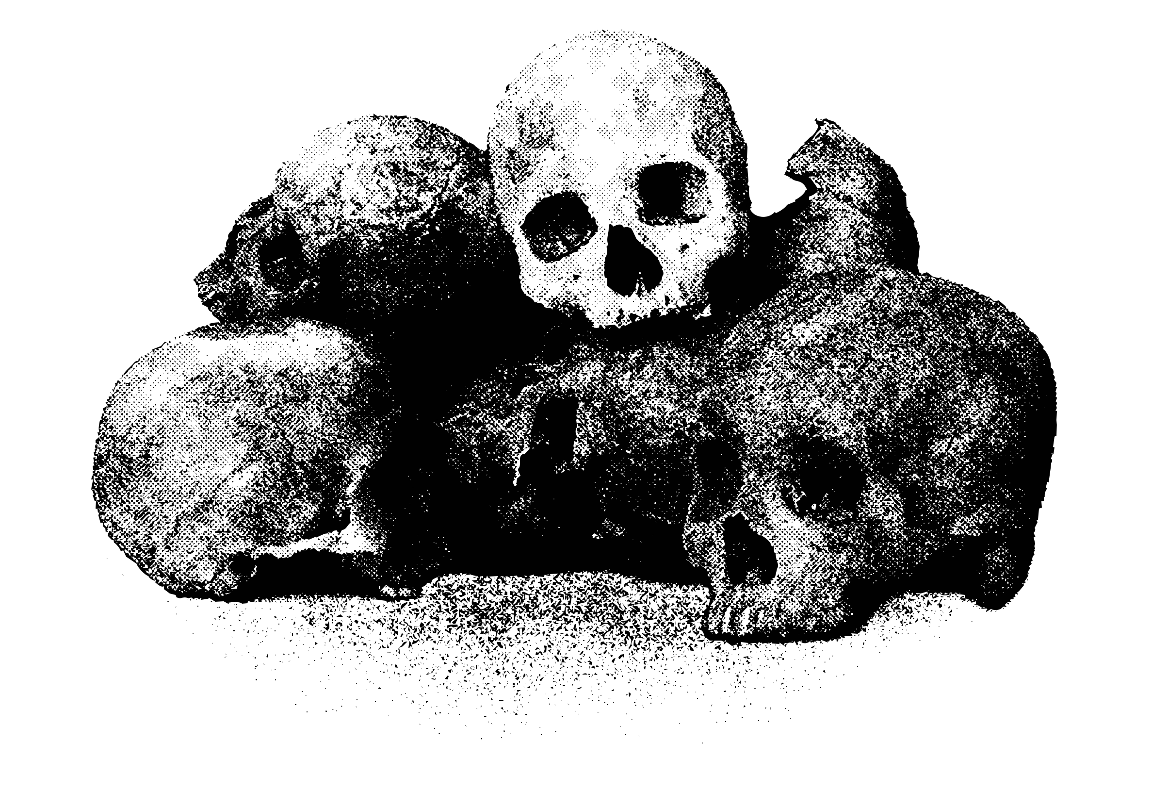 This features a pile of skulls and bones, possibly from the Pol Pot regime in Cambodia. There are several skulls stacked on top of each other, with some placed closer to the front and others further back. The arrangement creates an eerie and unsettling atmosphere. The skulls vary in size and shape, adding diversity to the collection. Overall, this image evokes a sense of history and tragedy associated with the events that led to such a disturbing scene.