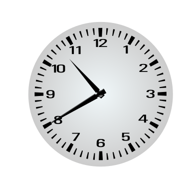 This features a large clock with black numbers and hands, prominently displaying the time as 10:40. The clock is positioned in the center of the scene, taking up most of the frame. Its face is white, contrasting nicely against the background. The clock's design appears to be minimalistic, focusing on functionality rather than intricate details or decorations.