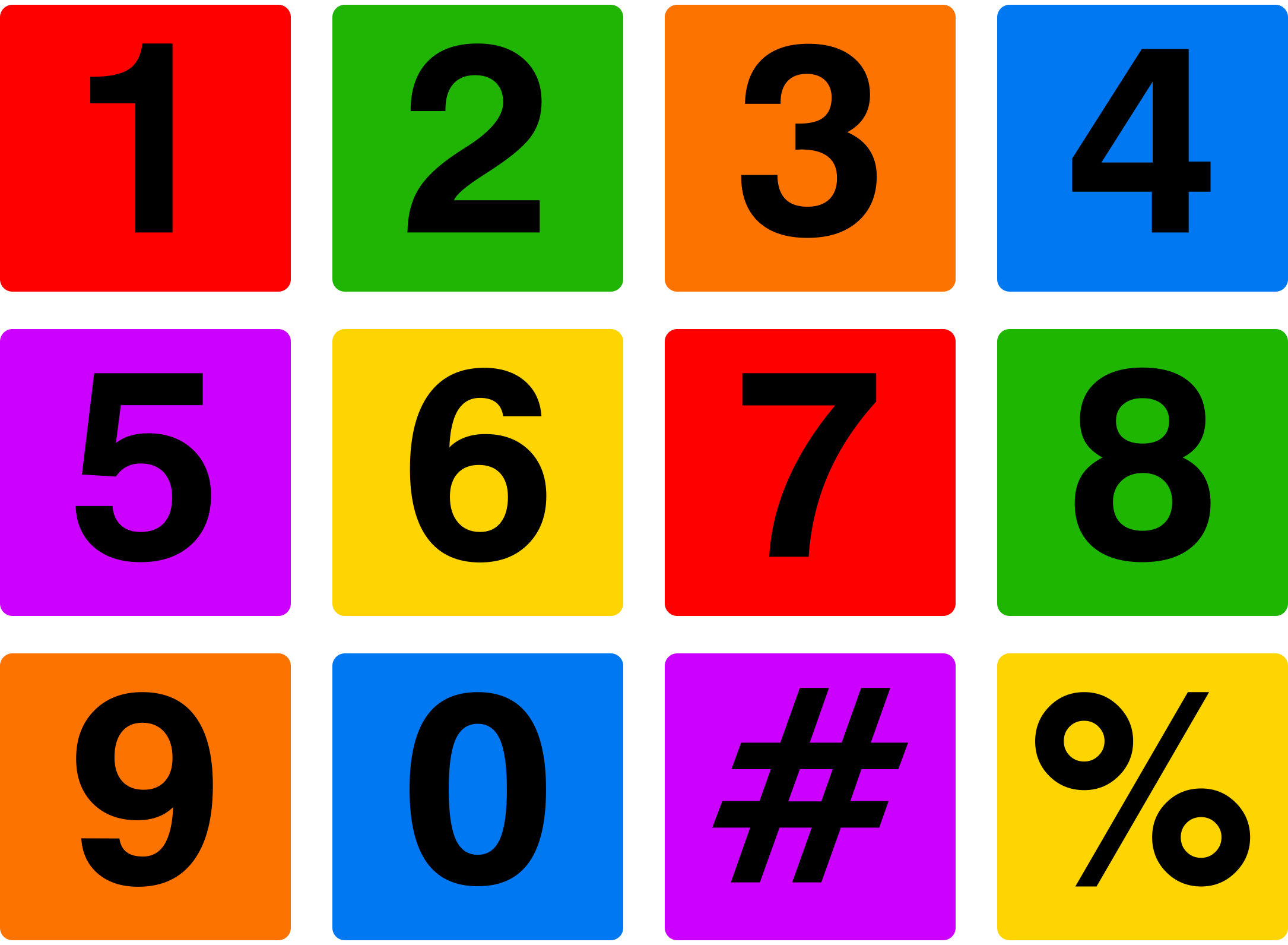 This features a colorful display of number icons, each with different colors and varying sizes. There are twelve individual numbers in total, arranged in a grid-like pattern. These numbers include the digits 1 through 9, as well as the percent symbol (%). The vibrant colors and diverse arrangement make this an eye-catching and visually appealing display of numbers.
