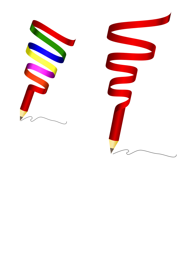This features two pens, each with a different colored ribbon. One of the pens has a multicolored ribbon, while the other is completely red in color. They are both writing lines on a white background, creating an artistic and visually appealing scene. The pens' positions suggest that they are being used for various purposes or simply as decorative elements within the composition.
