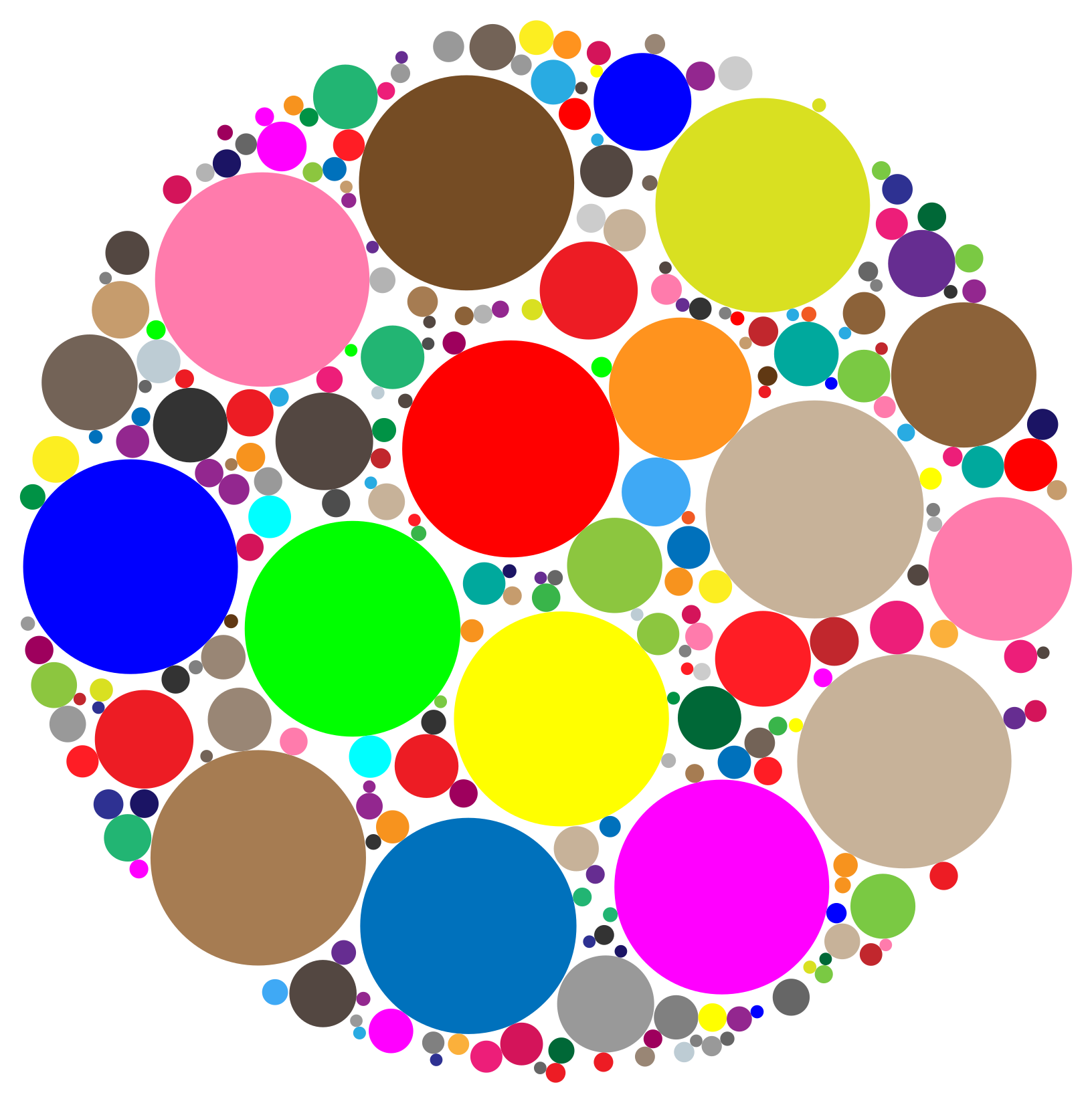 This features a large, colorful circle made up of numerous smaller circles. These smaller circles are scattered throughout the larger circle in various positions and sizes, creating an intricate pattern. The colors of the smaller circles are diverse, including shades of pink, yellow, blue, green, brown, orange, and purple. This vibrant display creates a visually appealing and lively scene that captures attention.