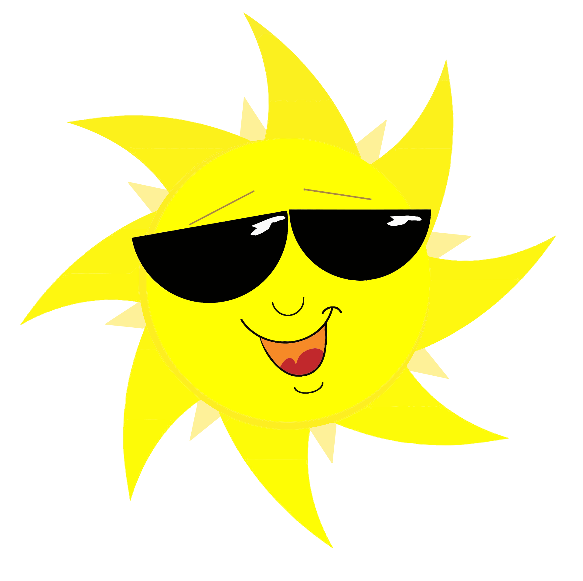 This features a yellow sun with sunglasses on, giving it a fun and playful appearance. It is positioned in the center of the frame, taking up most of the space. The sun's face has a smiling expression, adding to its cheerful demeanor. This creative design could be used for various purposes such as decoration or even as an emblem for a brand or company.