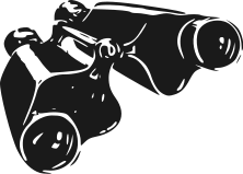 This features a black and white drawing of binoculars. The binoculars are depicted in a close-up view, showcasing their design and structure. They have a white outline, which adds to the contrast between the black background and the binoculars' details. This artistic representation captures the essence of these optical instruments, highlighting their unique features and making them stand out as an interesting subject in the image.