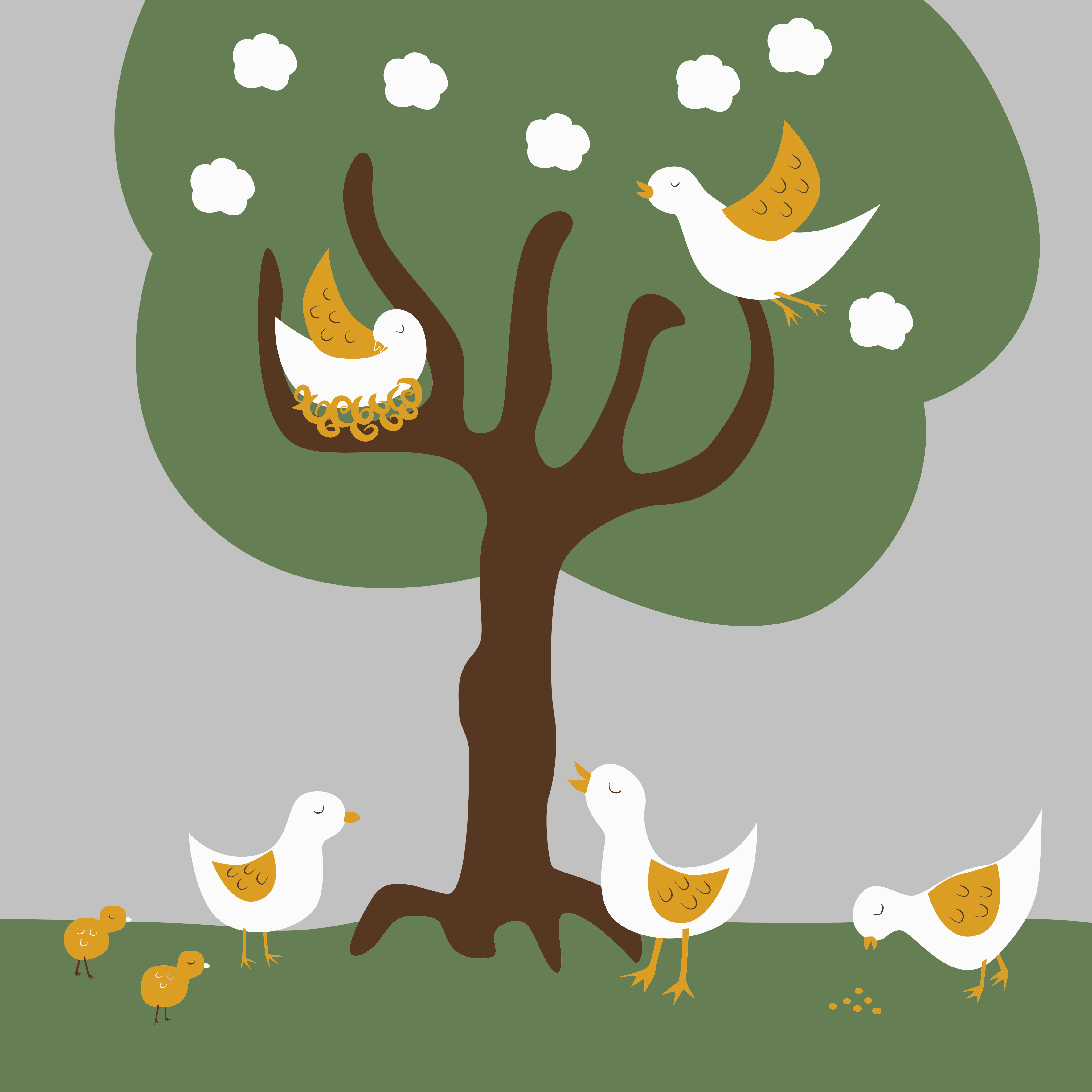 Tags: bird, cartoon, chick, illustration, tree, vector