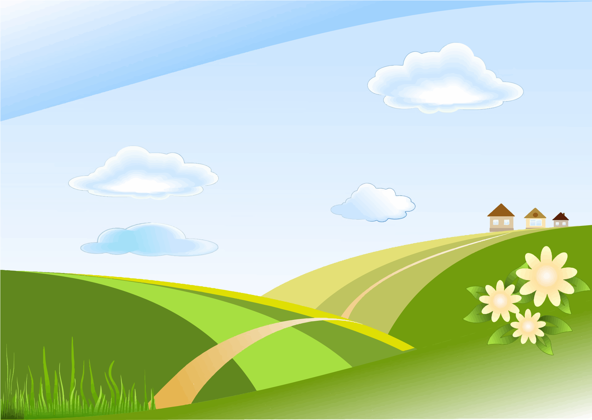 Tags: blue, green, hill, house, illustration, landscape, sky, vector